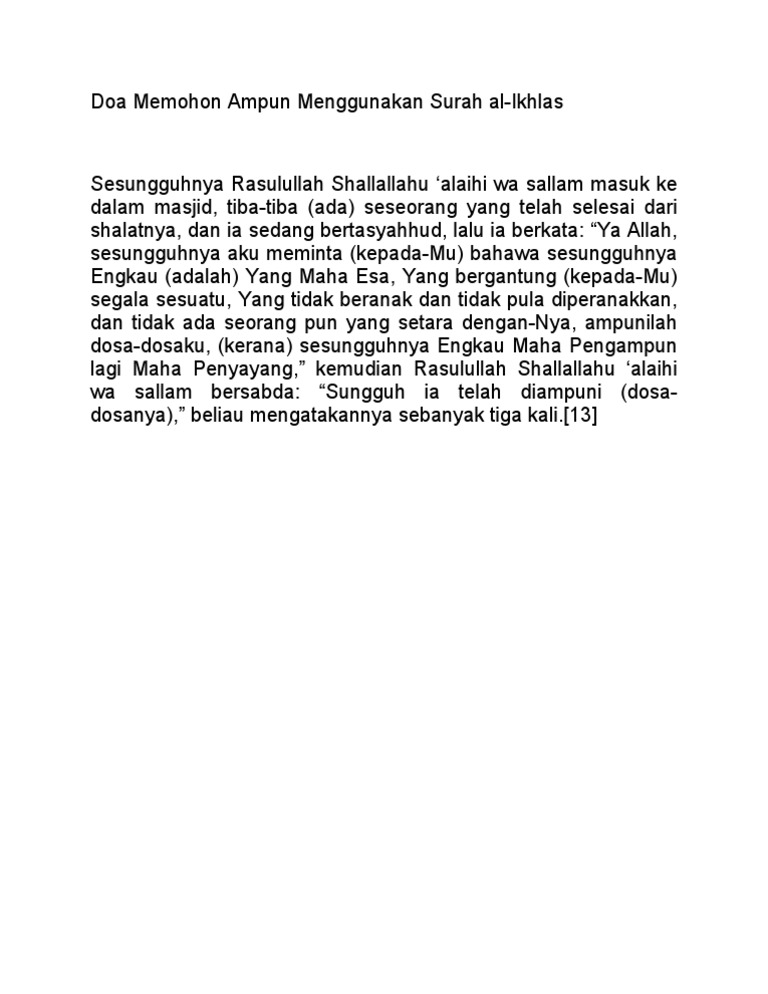 Doa berlindung dari fitnah dan azab neraka, dan fitnah harta. Doa minta ampun yang paling besar. Rabbanaa zhalamnaa anfusana wainlam taghfirlanaa watarhamnaa lanakuunanna minal khaasiriin. Teruslah memohon ampunan pada allah dalam al quran, allah juga meminta kita meminta ampun padanya, seperti ia sampaikan dalam al. Doa yang dishare kali ini adalah bacaan doa mohon ampun kepada allah swt atas segala dosa dan kesalahan lengkap bahasa arab.