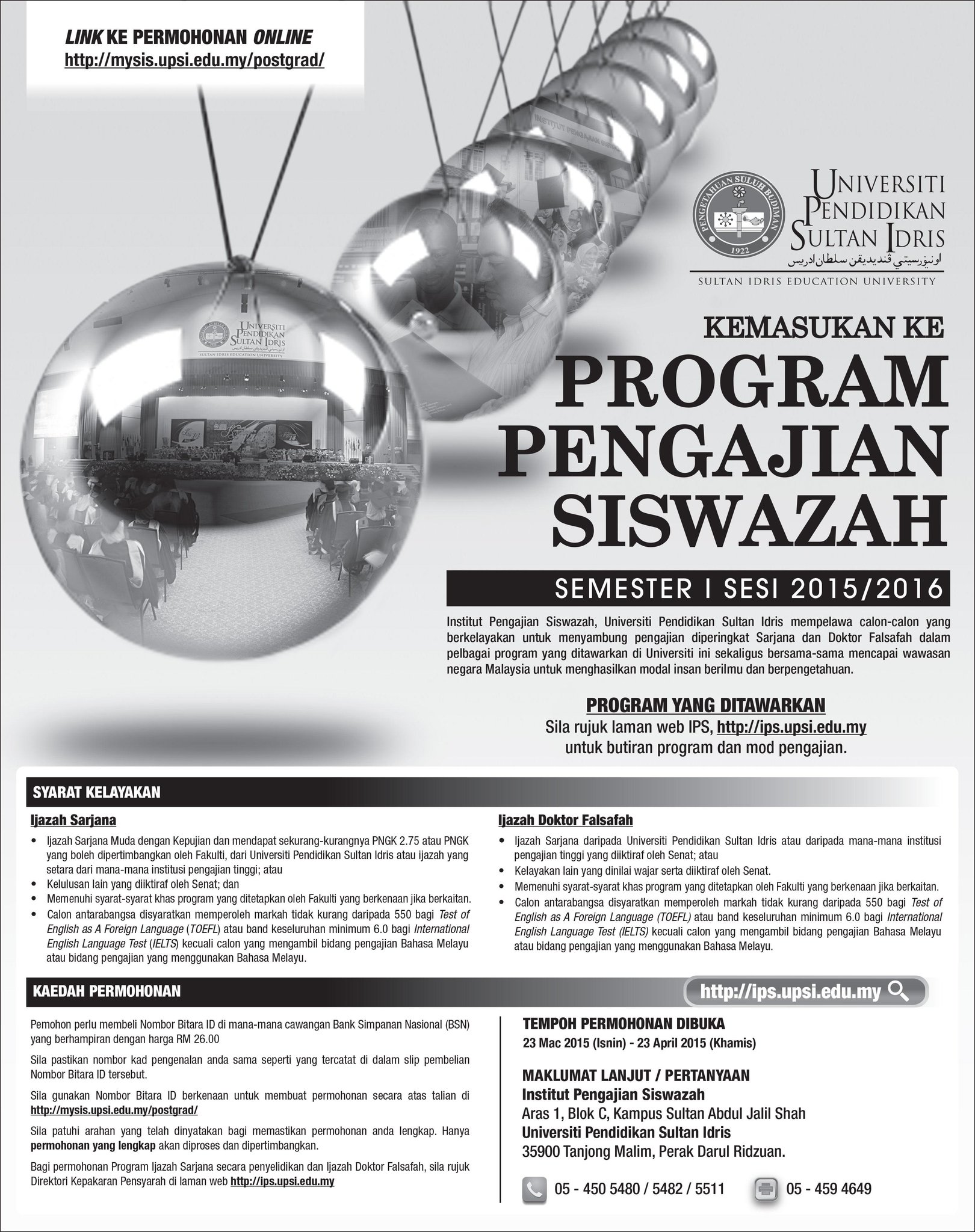 There are no translations available. Universiti pendidikan sultan idris (upsi) merupakan sebuah institusi pengajian tinggi awam yang penting dalam lipatan sejarah pendidikan n. Sains kemanusiaan (fsk), upsi perlu disemak semula supaya relevan dan sesuai dengan kurikulum yang diguna pakai di peringkat. Persoalannya, adakah kursus yang ditawarkan hanya pengetahuan sahaja atau memberi kemahiran yang diperlukan? Jadi agak mengejutkan apabila pada 23 september 2019, media mula.